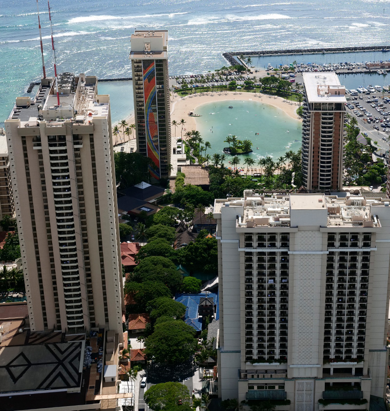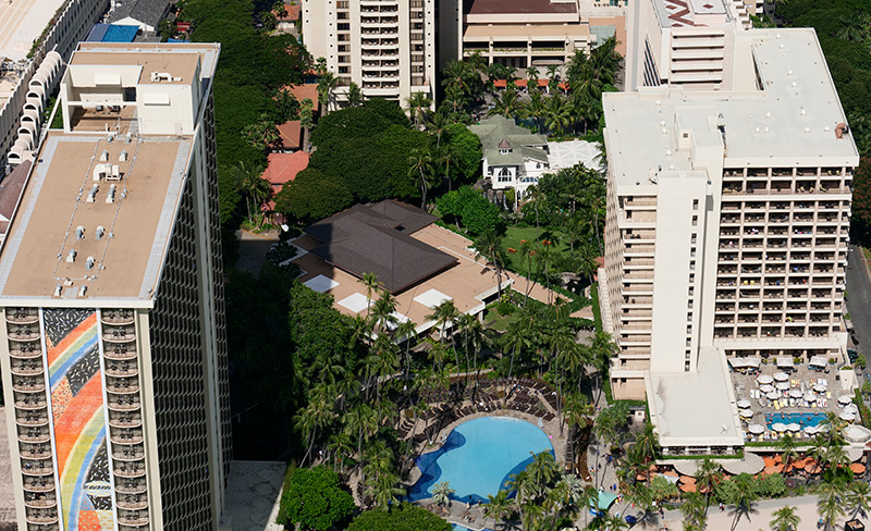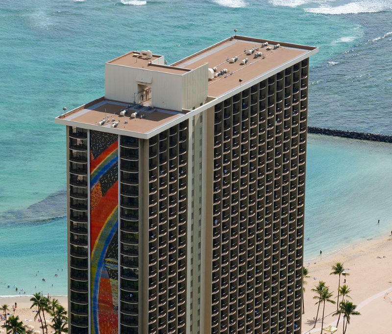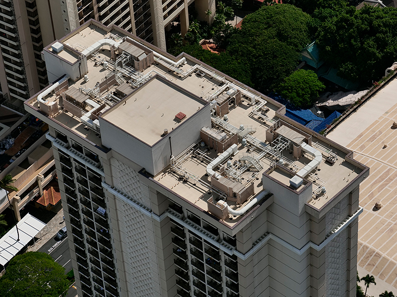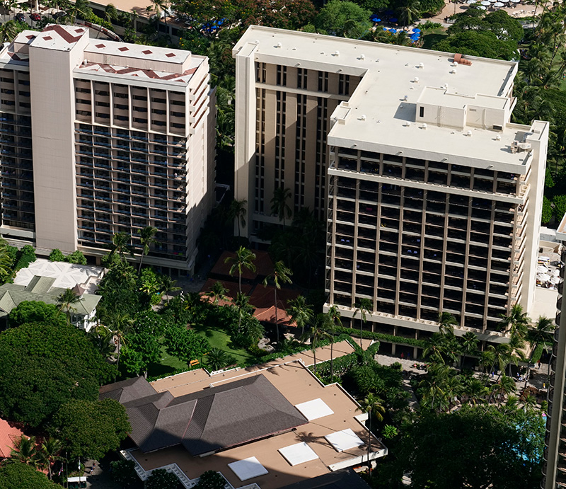 Since 2013 Honolulu Roofing has worked on 13 different roofing projects at the village, along with numerous waterproofing projects. Many of these buildings tower over 330’ with virtually no set up areas. But the challenges are always met by Honolulu Roofing and we remain a consistent go-to company for Hilton Hawaiian Village’s roofing needs.
